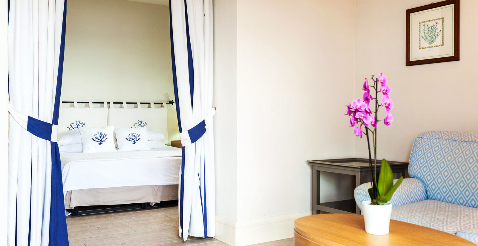 Having a gracious bedroom with a Queen size bed separated to a parlor with a sofa bed, balcony with view over the garden and the blue of the sea: are the perfect solution for whom prefer comfort and space, and for families.